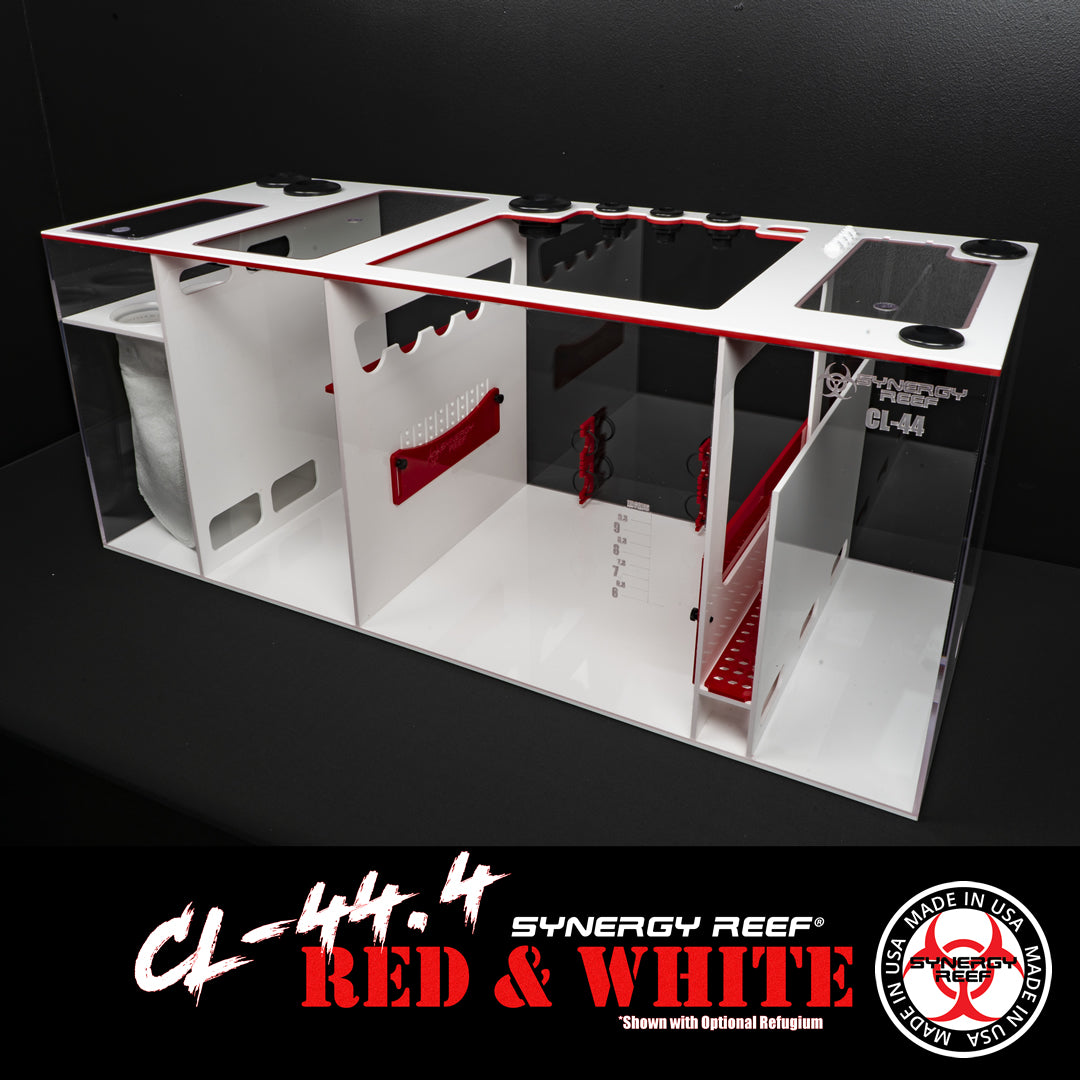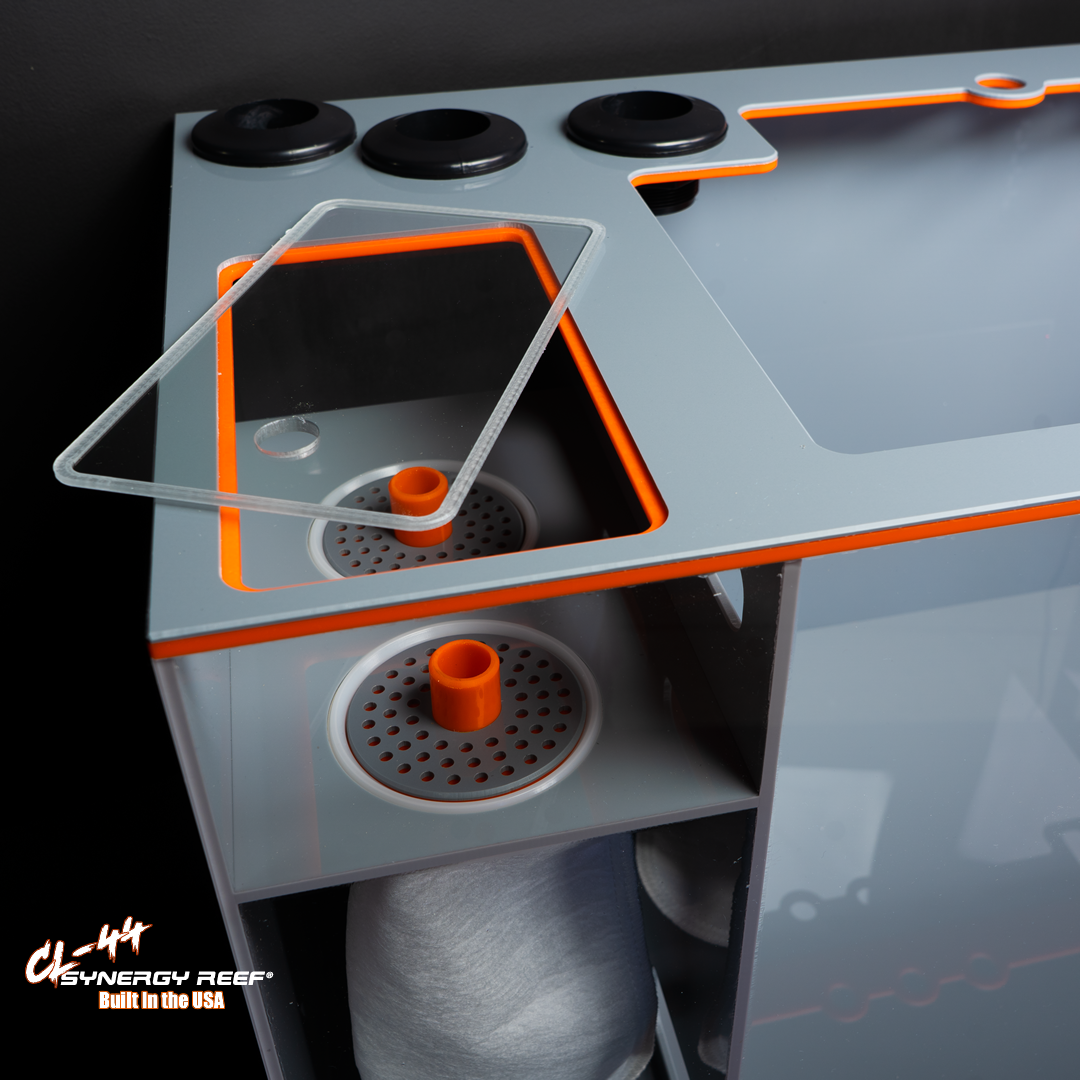 The Synergy Reef® CL-44 model sumps are the perfect choice for reefers who demand top-notch performance and long-lasting results. Designed and hand-built in the USA using only the highest quality materials and craftsmanship, these sumps are ready to meet the demands of large systems. With a larger width and height, our 44" models provide functionality that sets us apart from others on the market. To ensure the best fit for your system, please note that our 44" sumps may have different dimensions than others. Optional refugium wall is available and placed 10" from the sock wall. Be sure to select this option when ordering, as the refugium also includes a separate Poly carbonate lid and passive baffle system.