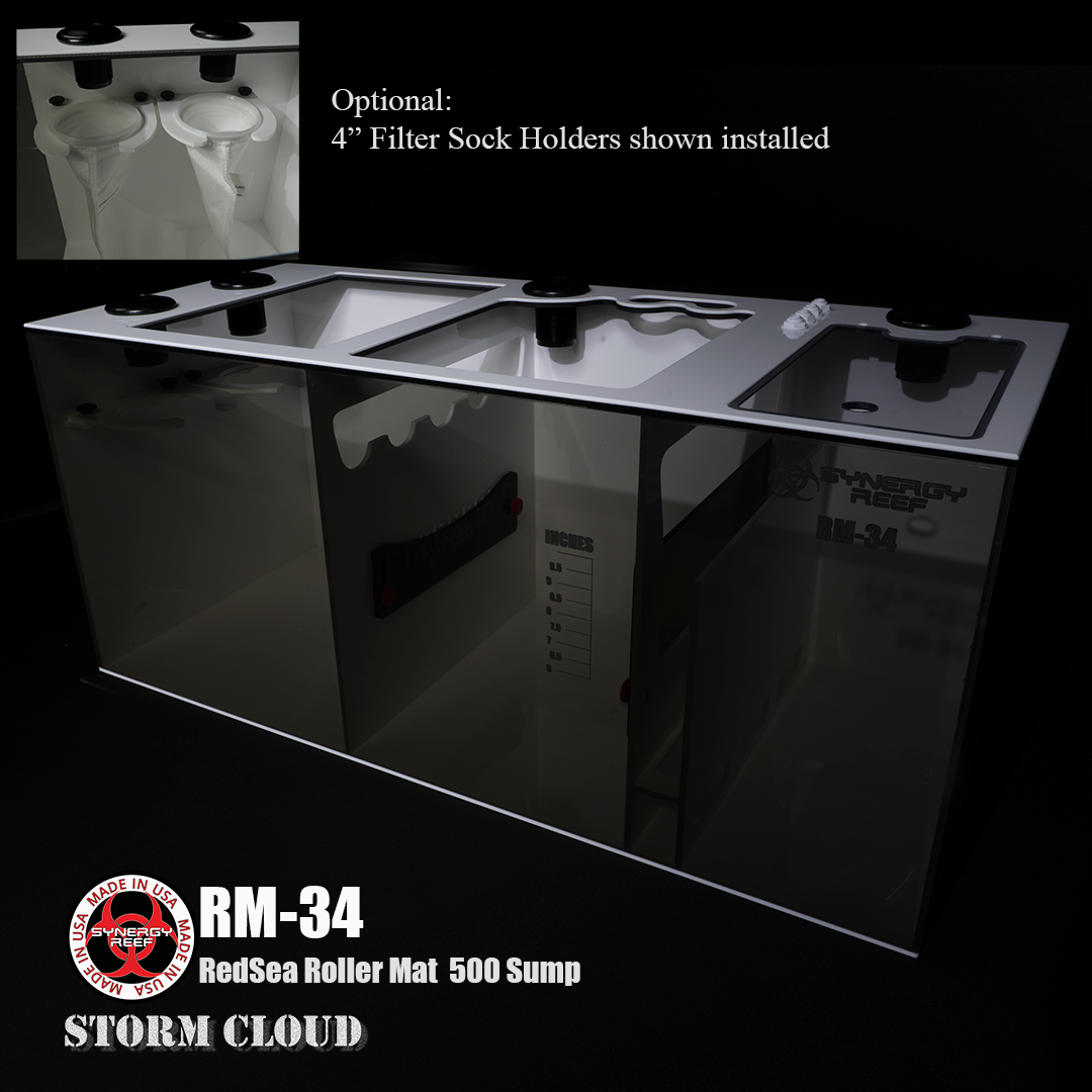 Fleece Roller mat sumps are becoming very popular. Looking for one that will allow you to use the New Red Sea® ReefMat 500 Fleece Rollermat or the Clarisea SK Rollermats? The Synergy Reef® RM-34 model sumps are your answer. We have designed this sump to be able to run 1 Red Sea® ReefMat 500 Fleece Rollermat or any of the Clarisea SK rollermats. Very easy to drop in your RedSea ReefMat 500 and get running. No Modifications needed. This sump also gives you flexibility of using just filter socks and a refugium.