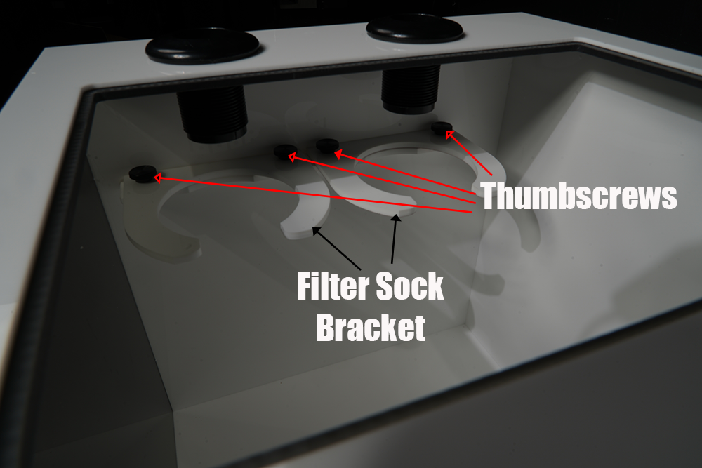 This sump will accommodate up to 2 x 4″ filter socks (with optional holders). It will work with the RSR ReefMat 500 and 1 sock, 1 Clarisea SK3000 or 1 Clarisea SK5000. Or with no Rollermats and 2 x 4″ filter socks. (ReefMat section can then be used as a Refugium). 2 mechanical filtration sections (Fleece Rollermat, or Filter Socks & Skimmer). We recommend this sump for tanks up to 150 gallons.