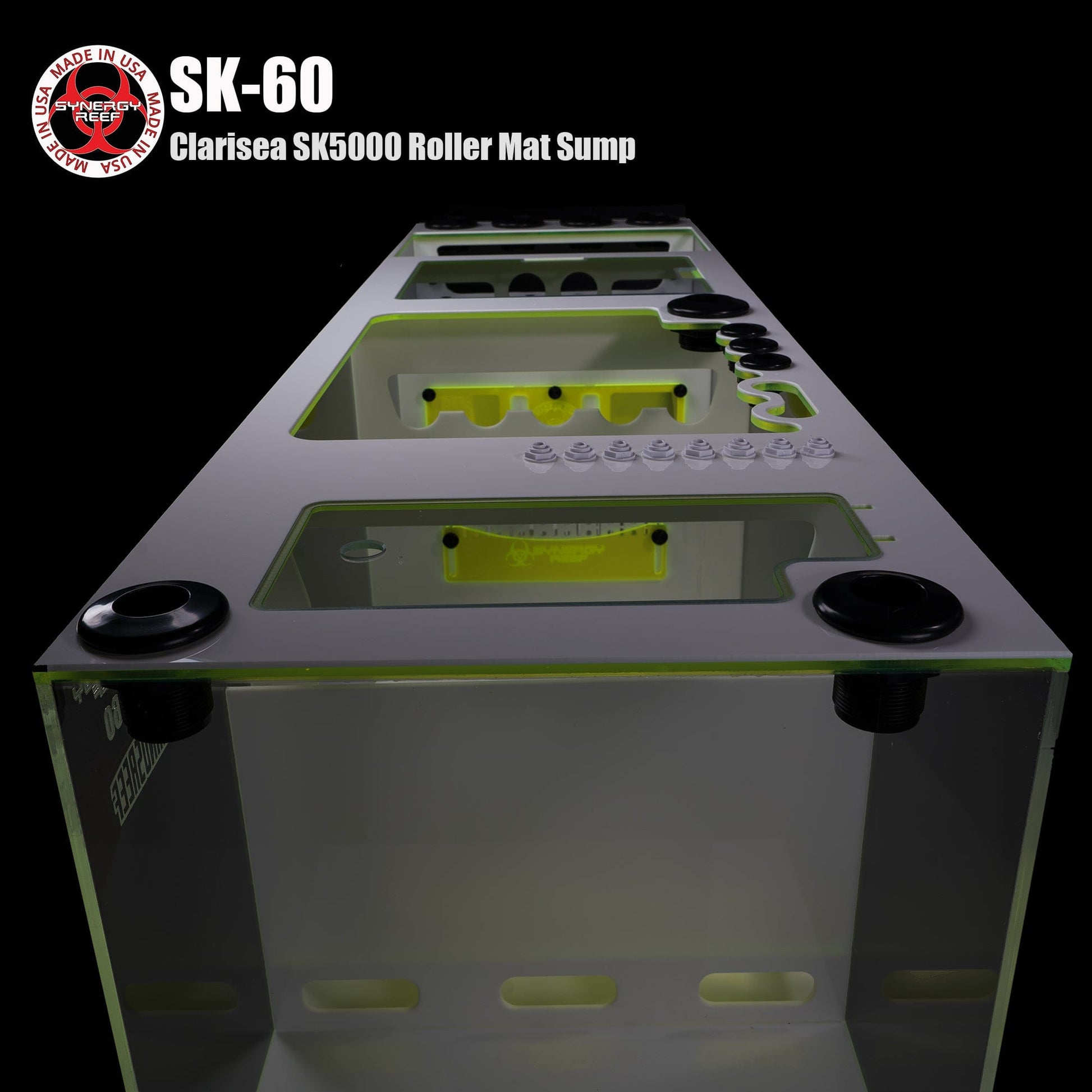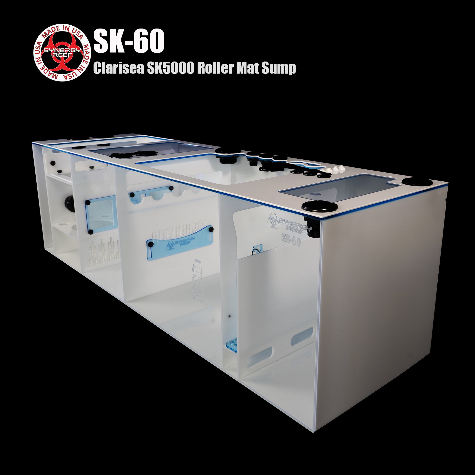 Are you looking for the perfect sump that incorporates the Best Fleece Roller mat available, the Clarisea SK5000? The Synergy Reef® SK-60 model sumps are your answer. We have designed this sump to be able to run 1 or 2 Clarisea SK5000 Gen2, Gen 2.1 or Gen3 rollermats. Earlier Gen 2 models will require a different float switch bracket. Please let us know on checkout if you need Gen2 Brackets. These flow rates vary and we recommend running a lower flow rate for more efficient filtration. Very easy to drop in your Clarisea SK5000 and get running. No Modifications needed and will not void your Clarisea warranty. You can also run filter socks on this sump in tandem with the SK5000. Or if you want to just run 7" or 4" filter socks, that can be done as well. These are hand-built right here in the USA with only the highest quality materials and craftsmanship.